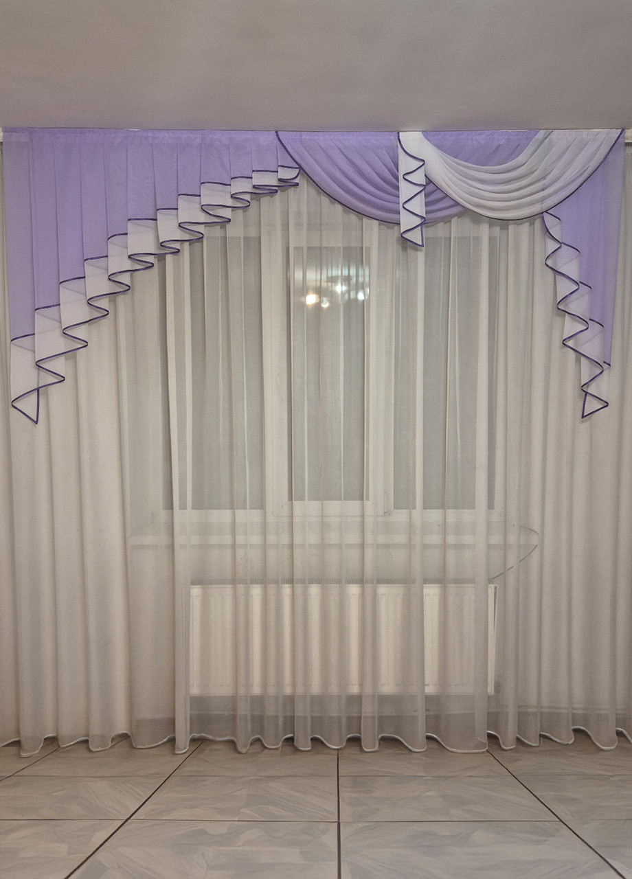 Ламбрекен асиметричний Firanka карниз 250см фіолетовий з білим (20_9_2,5м)